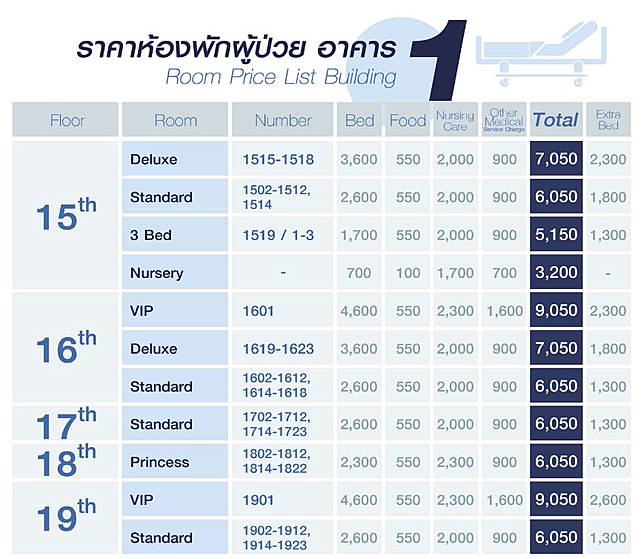 ห้องพัก & อัตราค่าห้อง ข้อมูลบริษัทประกัน อัตราค่าห้อง (รวมค่าบริการและค่าอาหาร).